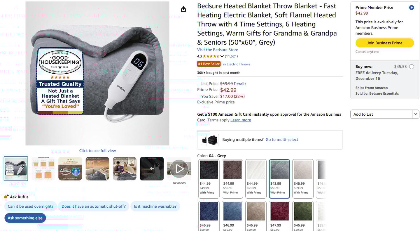 Safer & More Reliable: Tested in Bedsure’s Intertek-recognized lab with 74 safety checks that exceed UL standards, this ETL and FCC-certified heated blanket ensures dependable performance. The 3-hour auto shut-off prevents overheating, giving you peace of mind and making it a thoughtful gift for any household
