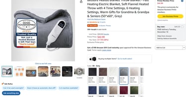 Bedsure Heated Blanket Throw Blanket - Fast Heating Electric Blanket, Soft Flannel Heated Throw with 4 Time Settings, 6 Heating Settings, Warm Gifts for Grandma & Grandpa (50x60 inches, Grey)UT3 Lite
