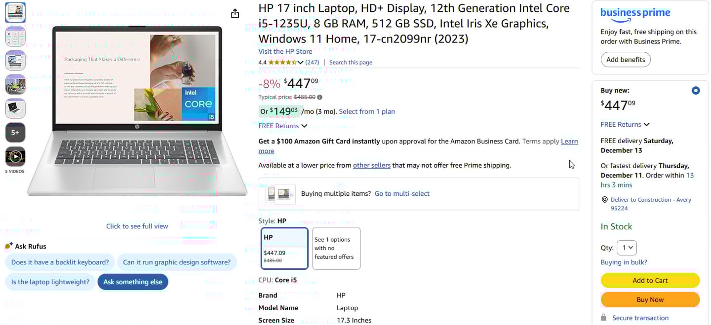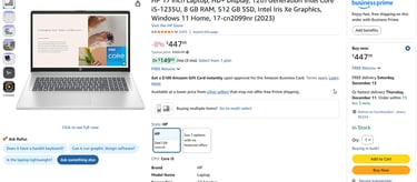 HD+ Display, 12th Generation Intel Core i5-1235U, 8 GB RAM, 512 GB SSD, Intel Iris Xe Graphics, Windows 11 Home, 17-cn2099nr (2023),Silver