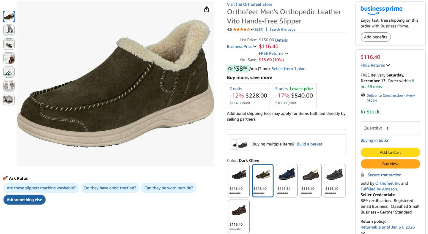 Orthofeet Men's Orthopedic Leather Lorin Hands-Free Slipper