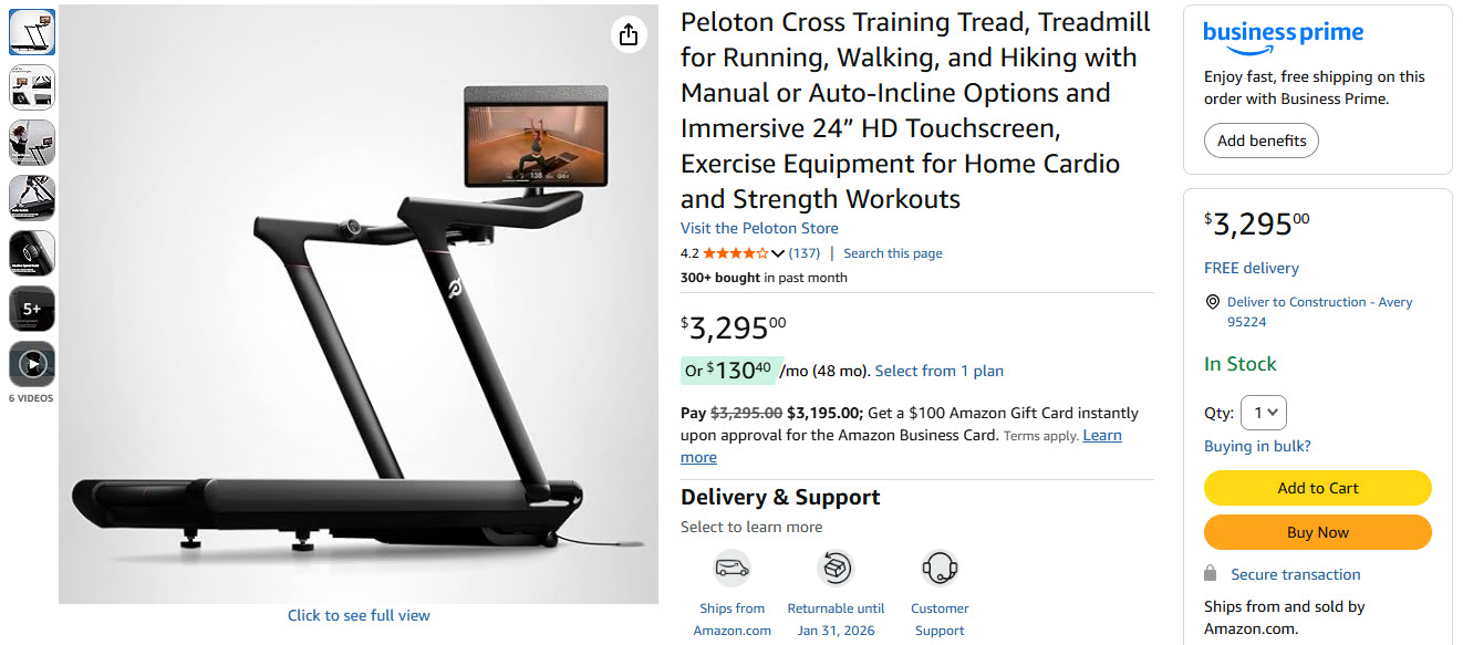 VALUE-PACKED MEMBERSHIP: A Peloton All-Access Membership must be purchased separately in order to access Peloton content on your Tread. You’ll pay $44/mo for your entire household and get unlimited access to our entire library of content available on your Tread and the Peloton App. Age, height, and weight restrictions apply. Your account can be activated on the touch screen during Tread assembly.