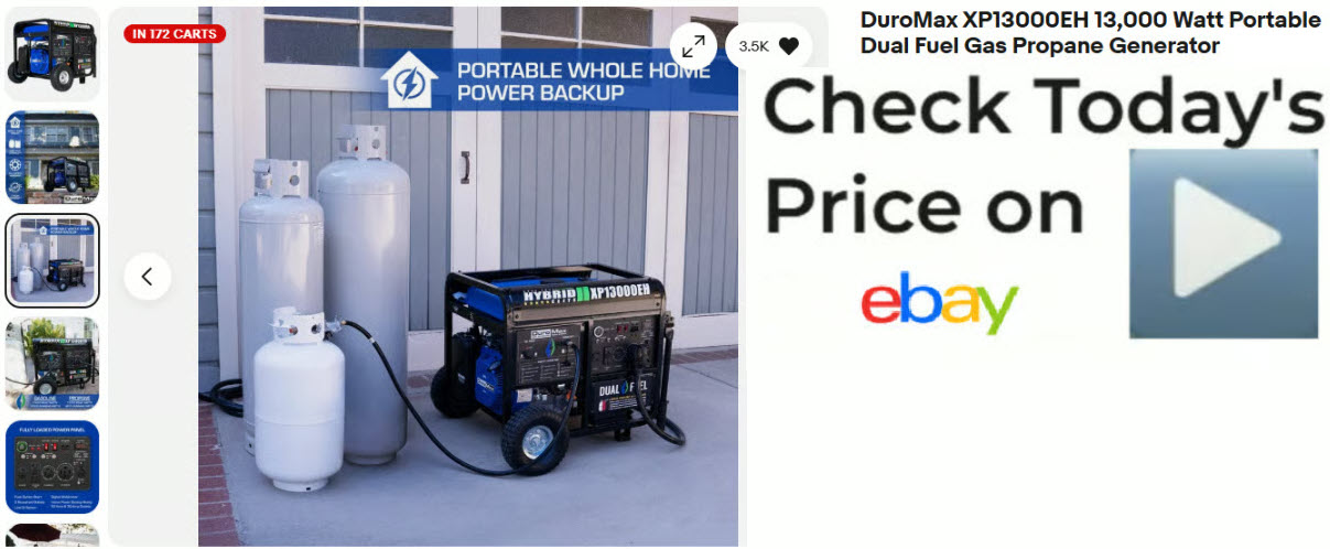 DuroMax XP13000EH 13,000 Watt Portable Dual Fuel Gas Propane Generator