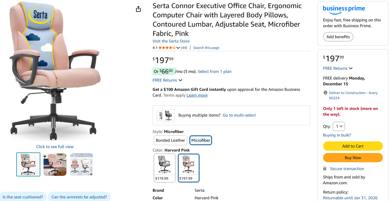 Serta Style Hannah II Office Chair, Harvard Pink Microfiber