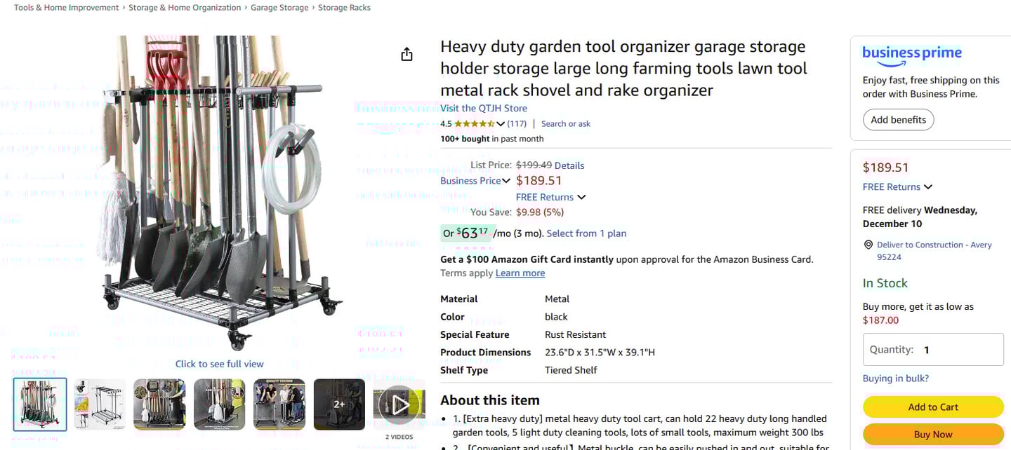 1. [Extra heavy duty] metal heavy duty tool cart, can hold 22 heavy duty long handled garden tools, 5 light duty cleaning tools, lots of small tools, maximum weight 300 lbs