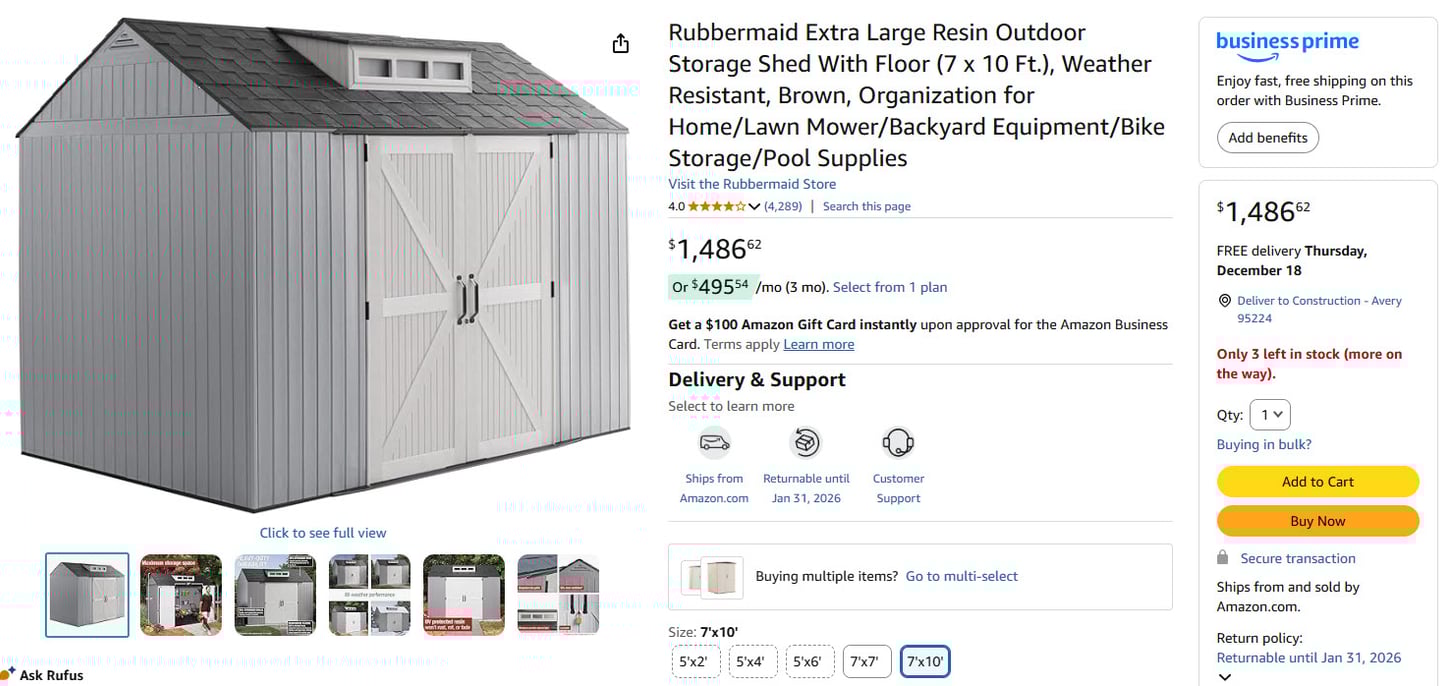 SUBSTANTIAL STORAGE CAPACITY: Stores large lawn care essentials including riding and push mowers, patio and garden equipment, large trash cans and more